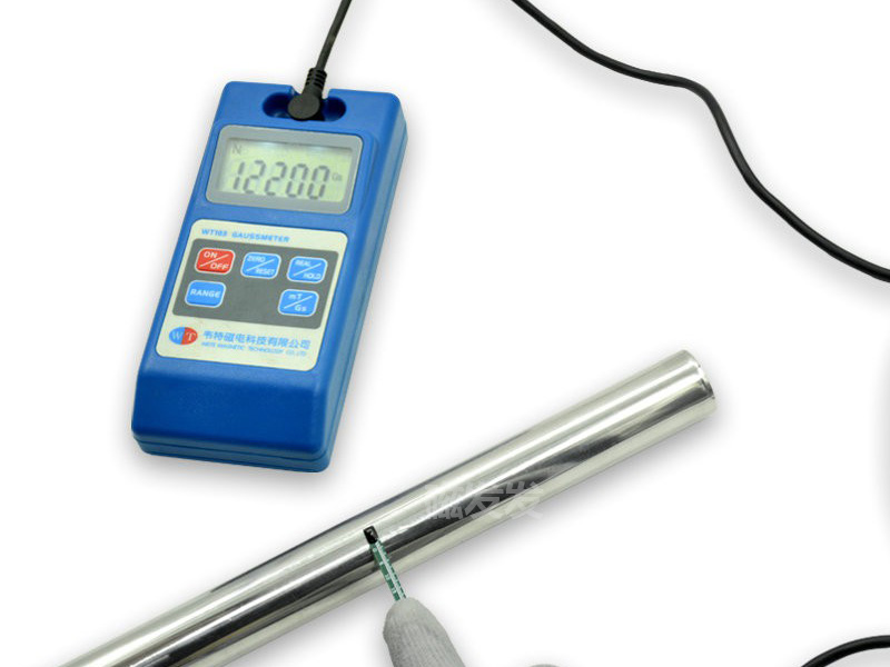 5、使用铁氧体永磁以及不同牌号的稀土永磁,可以生产不同表磁的磁力棒以满足不能客户的需求,D25mm的强力磁棒表磁可大到12000GS。
